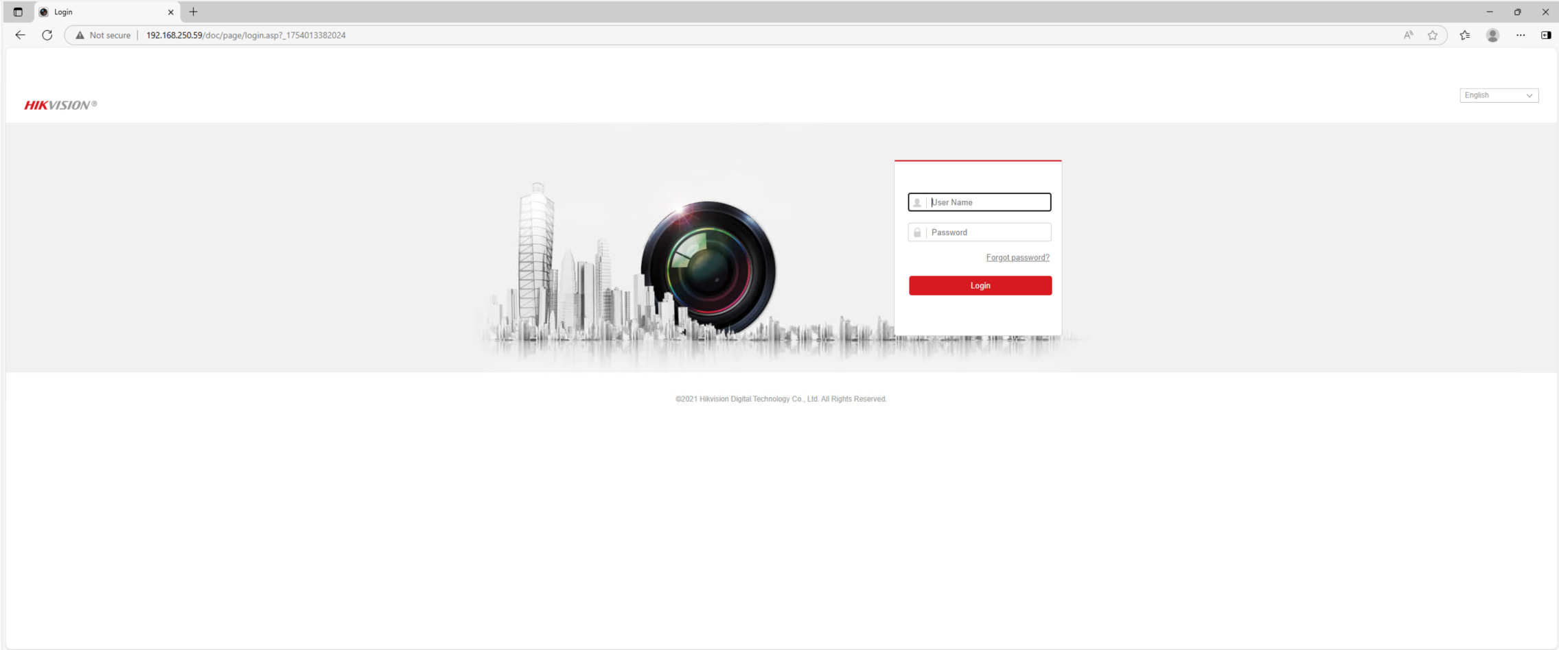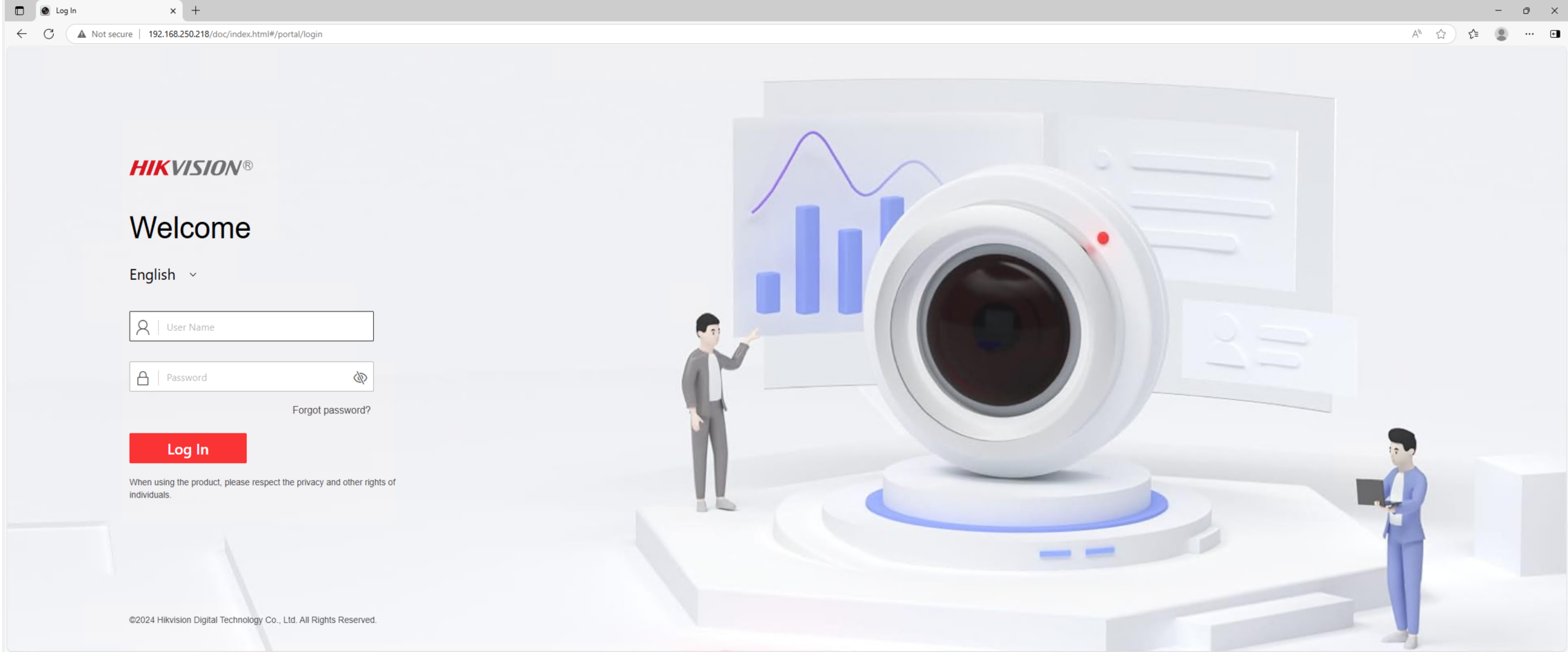 - Open web browser, browse to IP address of camera (Set in "Camera IP Configuration" above), and login using credentials setup before.